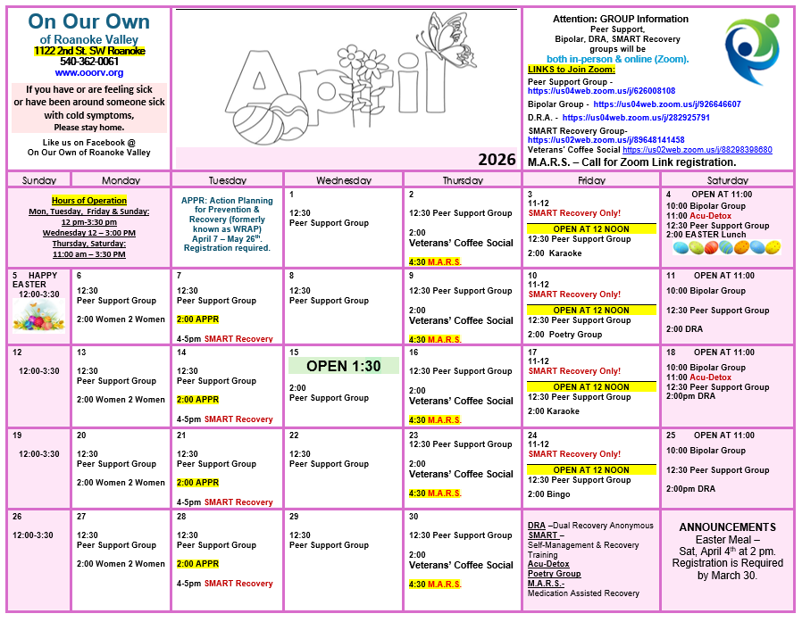 Upcoming events and trainings. Nov 1 to Nov 30 Untitled Event Sat, Nov 1, 2025 5:00 PM Sun, Nov 30, 2025 3:00 PM Google Calendar ICS View Event → May 14 to May 31 Peer Recovery Specialist Training Tue, May 14, 2024 8:30 AM Fri, May 31, 2024 5:00 PM Google Calendar ICS NEXT PRS TRAINING COMING IN WINTER 2025 View Event →